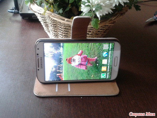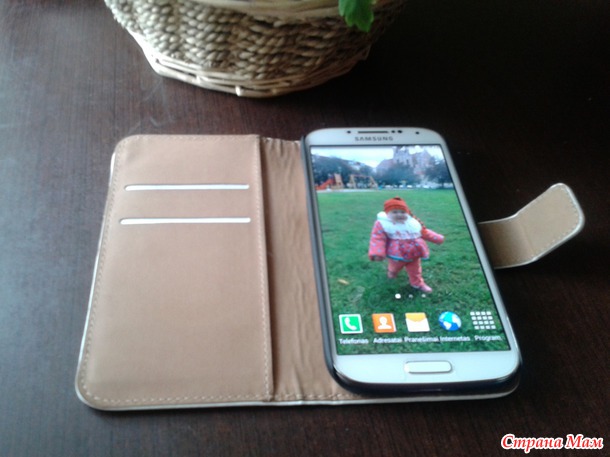 Чехол на самсунг S4 покупкой давольнные, правда кожей не особо пахнет