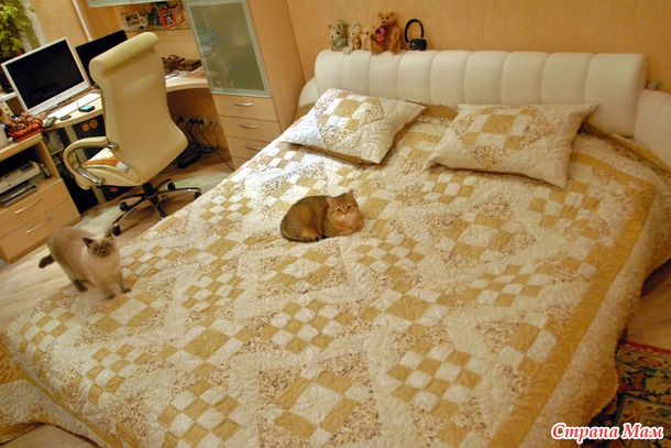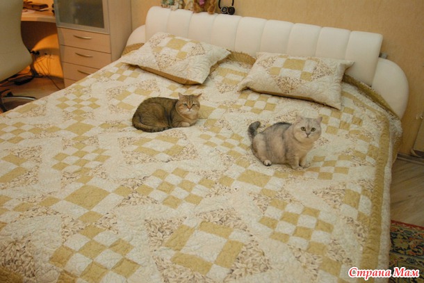 Джоржия, кошка моей младшей, когда у меня гостила, тоже первым делом улеглась на новый квилт.