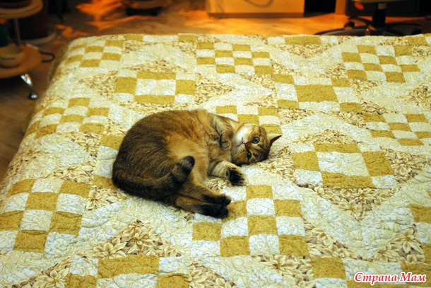 Это всегда так! Вот еще мой красавец кот. Его рыбой не корми, дай на квилте полежать!