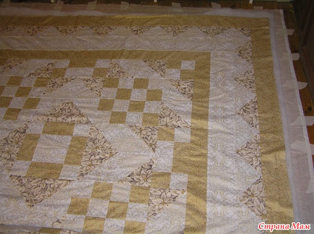 Когда я скрепила все слои, то встал вопрос - как всю эту махину простегать? Самый простой вариант для стежки больших квилтов подробно описан в этом посте. https://www.stranamam.ru/post/7321661/