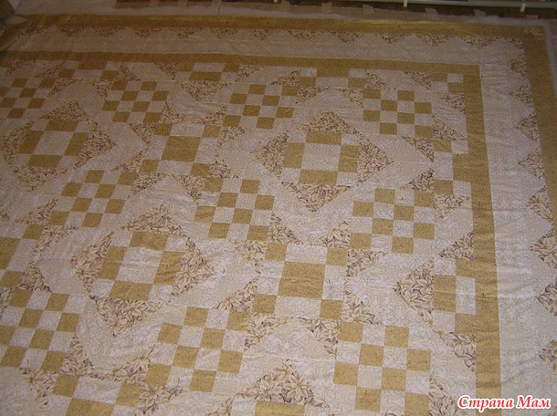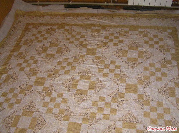 Отдельно скажу, почему я шила лоскутный верх таких размеров - 3х3 метра. Ведь покрывало должно быть размером 2,80 х2,80. Так почему до стежки лоскутный верх размером 3х3? Это все потому, что стежка "съедает" часть полотна.