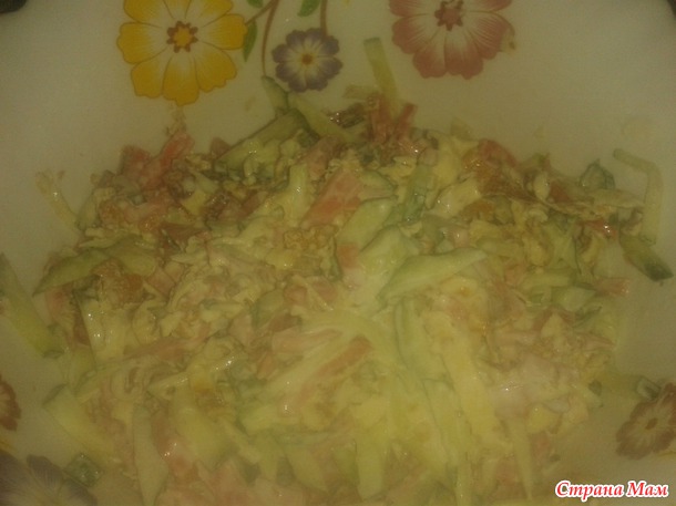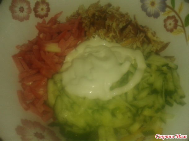 Заправляем майонезом. Надо дать постоять, что пропиталась печень.
