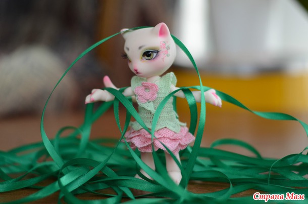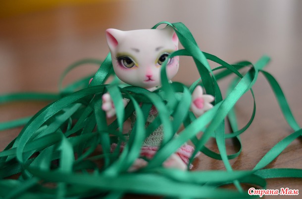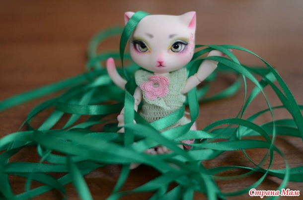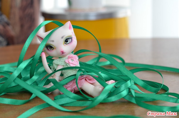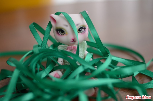 Взяла Сакуру с собой на работу. Она немного заскучала и полезла ко мне в сумму в поисках чего нибудь интересного. В сумке у меня всегда куча лент лежит, на тот случай, если выдастся свободная минутка..