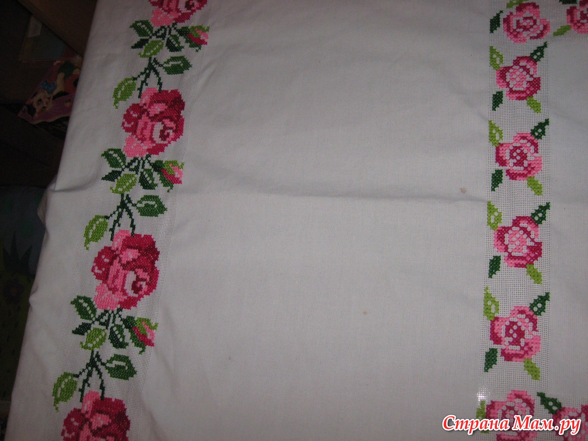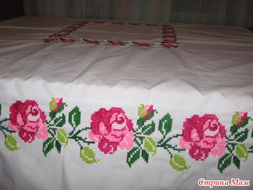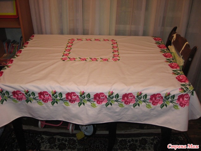 Я сейчас мужу рубашку вышиваю на льне, но подкладываю канву, вы знаете ничего сложного. Главное сразу ровно канву приметать.Так что решитесь и попробуйте сделать скатерть льняную. Попытка не пытка.