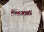 Закончила один рукав, думала буду вышивать месяц, а получилось не прошло и недели. Начала орнамент на пришивной канве, сетка сдвигается. Крестики на сетке расходяться, потом начиталась что надо было очень сильно накрахмалить ткань и сетку (или купить жесткую сетку) в итоге все выпорола, купила водорастворимую схему и крестики вылетают из под иглы, думаю через две недели смогу одеть свое творение.