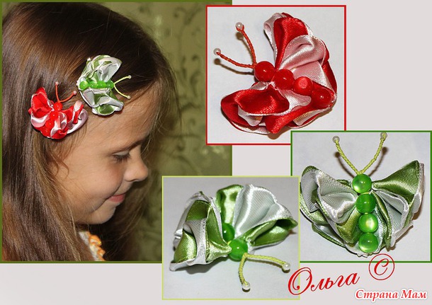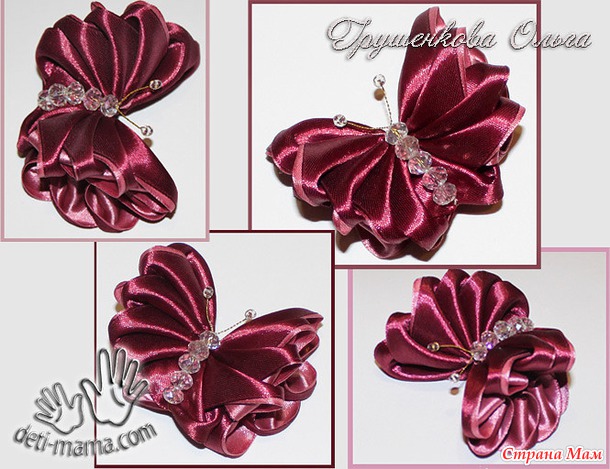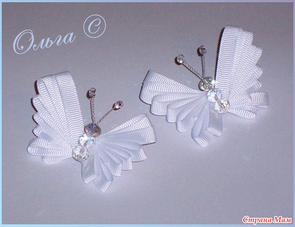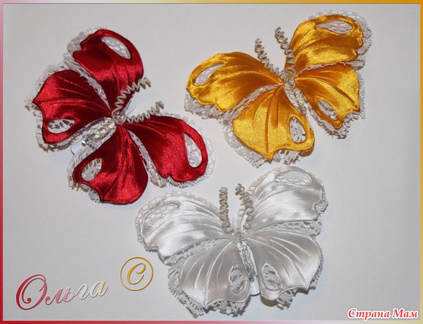 Данные бабочки изначально видела из натурального шелка, но они прекрасно смотрятся из лент.