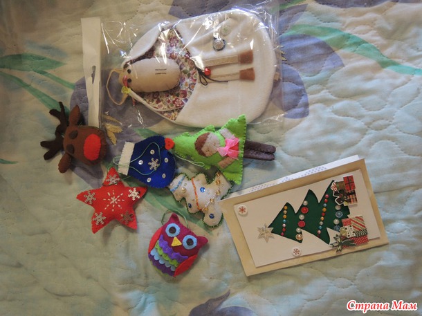 Очень красивые игрушки, сделанные золотыми ручками Оксаны и шикарная овечка талисман!! И замечательная открыточка с теплыми и сердечными поздравлениями!