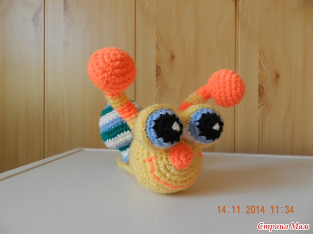 Я ее вязала по схеме из интернета, но вообще я сам художник (в душе ) - не люблю вязать по схемам (про игрушки имею в виду), я сама вижу картинку и понимаю как я могу это сделать. То есть, улитку, я бы по своему немного другой связала...