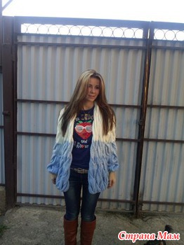 Ниточки Джанго от Назар Рус 750м/100 гр в три нитки, ушло около 1500 гр. Вязала цельным полотном. Дочке понравилось, заказала еще другой расцветки. Спасибо всем заглянувшим! Читать полностью