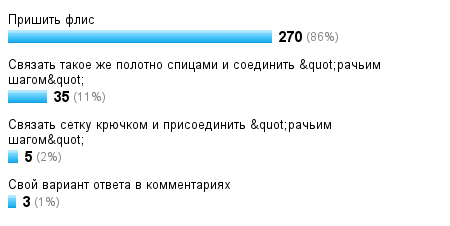 Связать такое же полотно спицами и соединить "рачьим шагом"