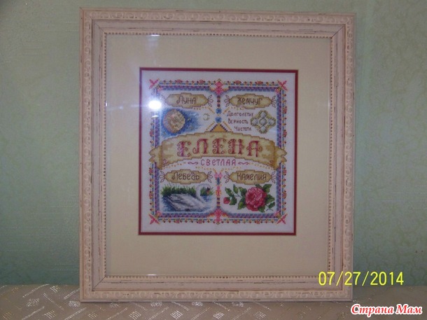 Хотела давно похвастаться, но все как то не получалось, то инет вис, то вообще забывала))))). Я отношу себя к ну очень творческим личностям, быстро загораюсь, но и быстро затухаю)))))))... лежит много картин начатых, незаконченных, мне важен сам процесс, а когда остается 2-3 крестика -все мне картина не интересна и просто лежат у меня. А тут случился юбилей подруге и конечно встала проблема с выбором подарка - у нее все есть, ну конечно это так я считаю и решила я ей вышить именной оберег фирмы Раnna с использованием мулине и бисера, ну конечно пришлось идти в багетку. Пошла и до кучи захватила свою березовую рощу от "Золотое руно" вышивала давно когда беременная была, а т. к. ребенку уже 5ый год, то можно сделать вывод, что про незаконченность работ я не вру)))