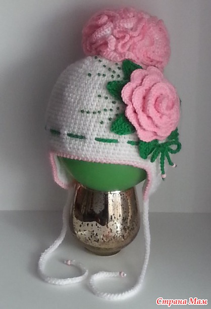 Эта шапочка быстра связалась размер маленький. а вот эти цветочки утомили.