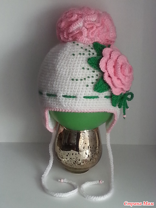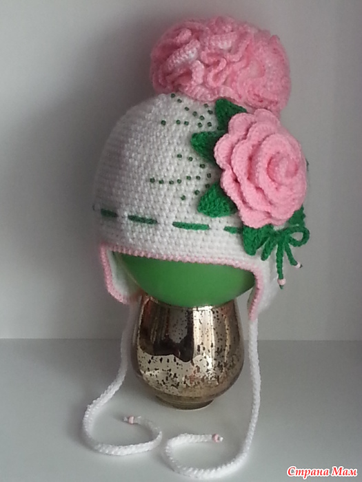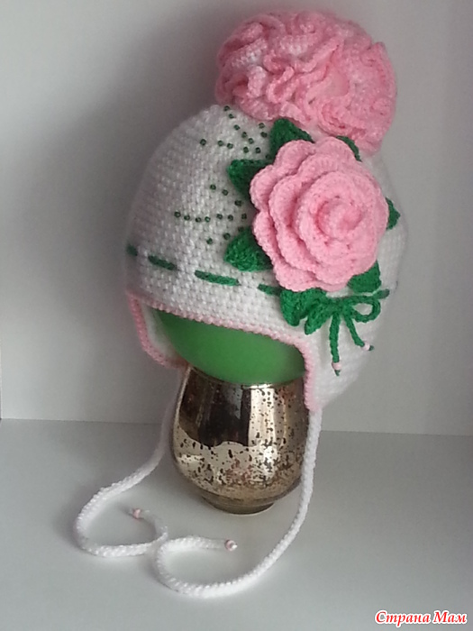 Эта шапочка быстра связалась размер маленький. а вот эти цветочки утомили.