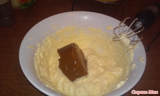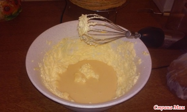 Добавить вареную сгущенку и заварной крем и опять взбить