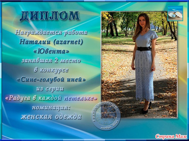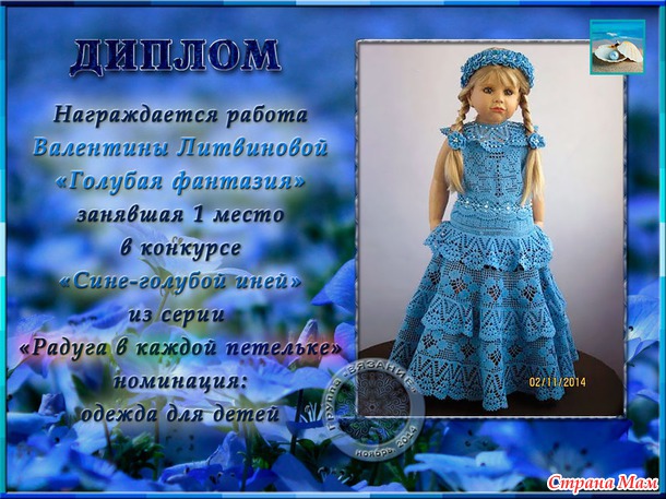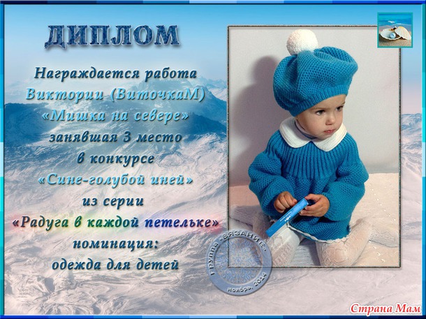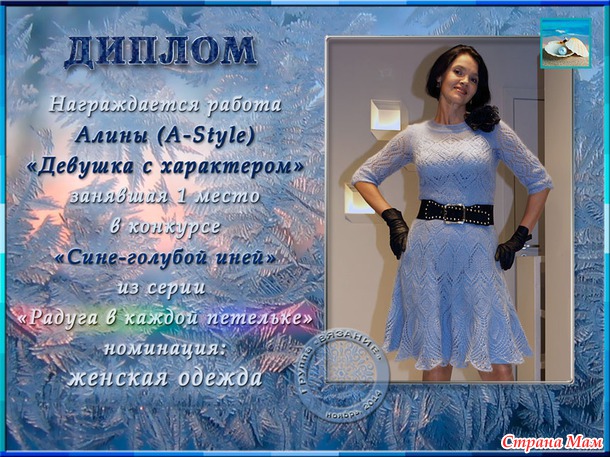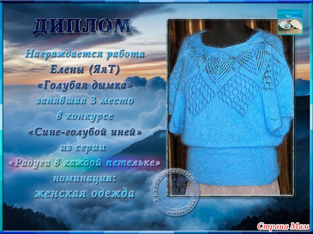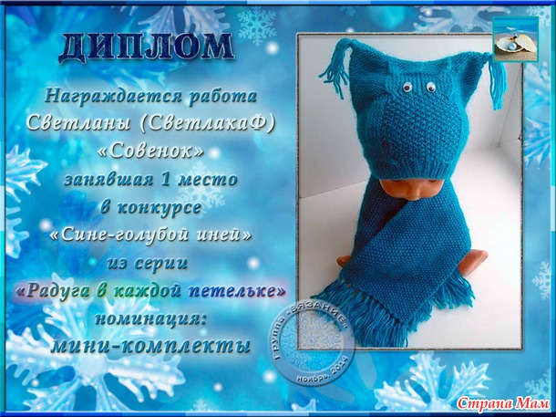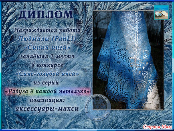 Поздравления победителей конкурса "СИНЕ-ГОЛУБОЙ ИНЕЙ" (из серии РАДУГА в каждой петельке)