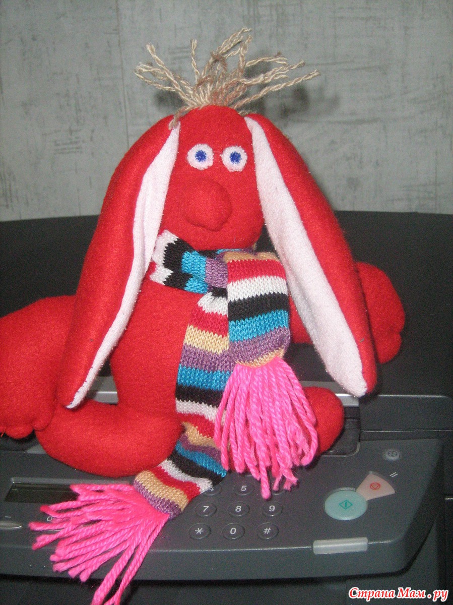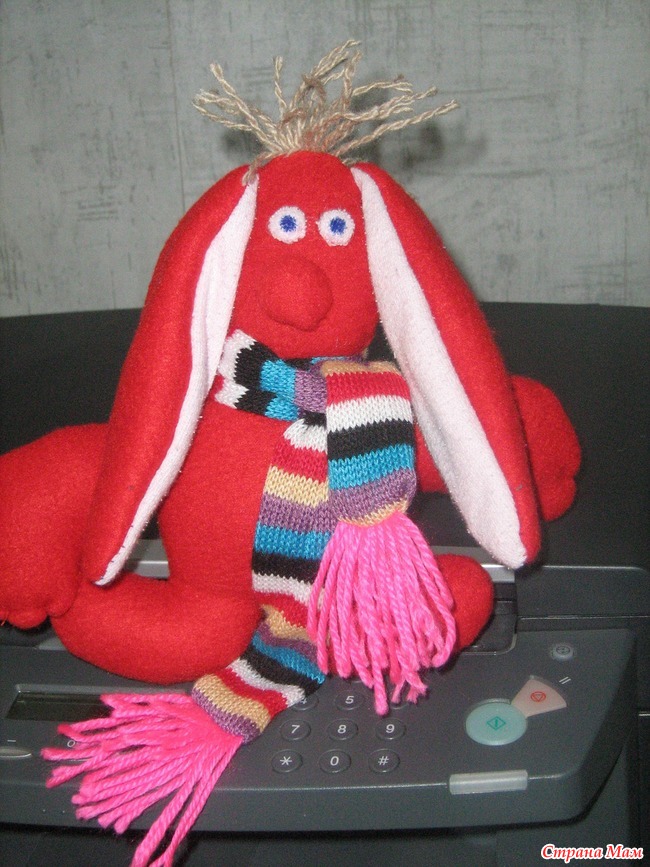 Какой здоровский! У тебя много новых игрушек! Супер зайка!!! И шарфик ему идет!