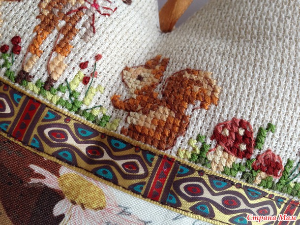 В последние осенние денечки вышила такой милый сюжет из журнала Creation point de croix № 32, дизайн Veronigue Enginger.