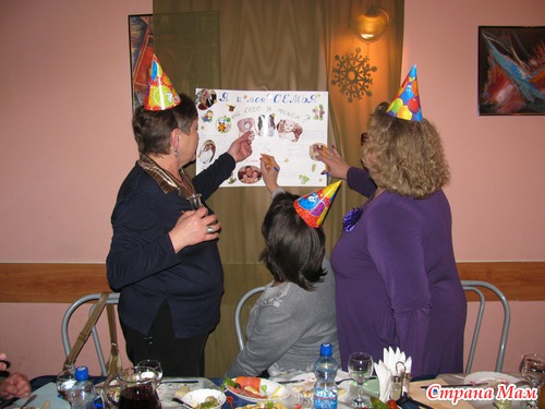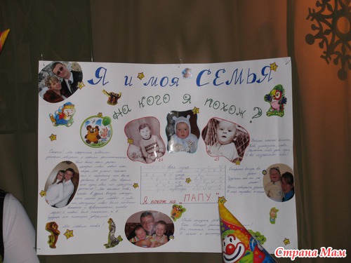 Первый конкурс был между мамой и папой, но участвовали гости. Конкурс "на кого я похож". Я подготовила плакат. В его центре разместила фотографию именинника, а справа и слева от нее фотографии родителей (т. е. нас с мужем) в годовалом возрасте. Под фотографией малыша. Под фотографией Ярослава в столбик написала пункты, по которым нужно оценить сходство малыша с одним из родителей. Гости в очередь становились, чтобы поучаствовать