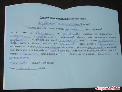 Вместе с гостями мы написали малышу поздравительную телеграмму (получилось очень забавно)