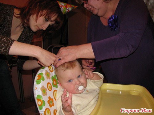 Затем наша крестная состригла с Ярушки несколько прядок его первых волосиков