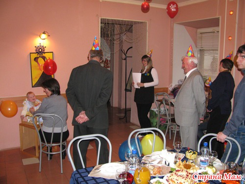 Стали подходить гости. И вот все в сборе, но за стол никто не садится - просто нашему имениннику пора кушать. Все стояли и любовались с каким аппетитом он ест.