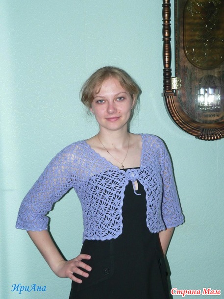 Моя виртуальная подружка связала болеро, мне понравилось и захотелось сделать для дочки. Лида поделилась схемкой. Извинялась, что не очень качественные фотки, снимала на телефон. По-моему, всё прекрасно видно, я разобралась и связала! Делюсь с вами! Пряжа КАМТЕКС "Соната-люкс".