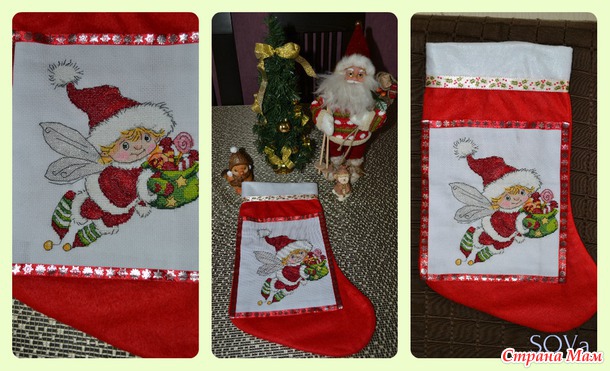 На оформление сапожка ушло не больше часа. Сам сапог купила уже готовый и просто нашила вышивку и приклеила ленточку.