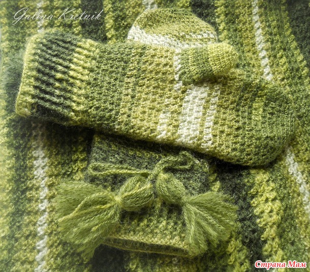 Вот в варежках нитка удачно легла, не заморачивалась, как вяжется, так вяжется.
