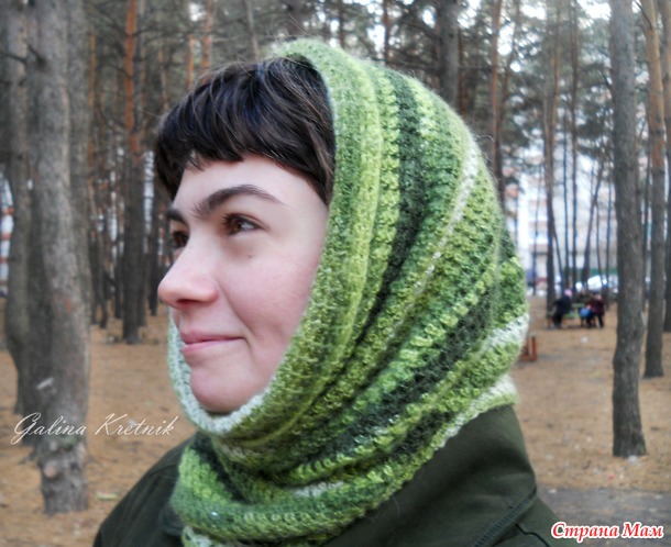 Снуд - один мне (поменьше), другой - подружке (побольше). В см сказать не могу, узор сильно тянется. Вот тут узорчик брала http://www.proshapki.ru/2012/12/Sharf-truba-kruchkom-uzor-video.html