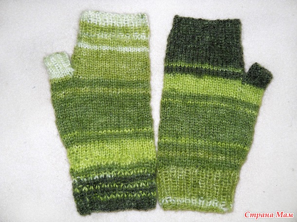 Показываю. Митенки разные: одни поуже (мои, у мну кисти тонкие, ручонки костлявые
