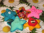 Вот еще объемные звезды, их тоже можно использовать по разному, н-р для украшение елочки, конечно же, как брелок, как игольница и как ароматизированное саше, можно н-р замачить в крепком растворе бальзама для белья, а потом слегка прополаскав высушить и положить в шкафчик