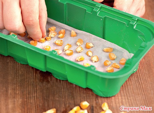 3. Сверху укладываете семена, как-будто сажаете. Прижать слегка ложечкой, чтобы плотно соприкасалось.