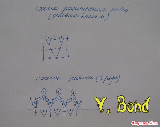 Рюши вязала по схеме, придуманной экспромтом мною (см. выше набросала ручкой).