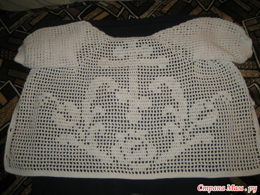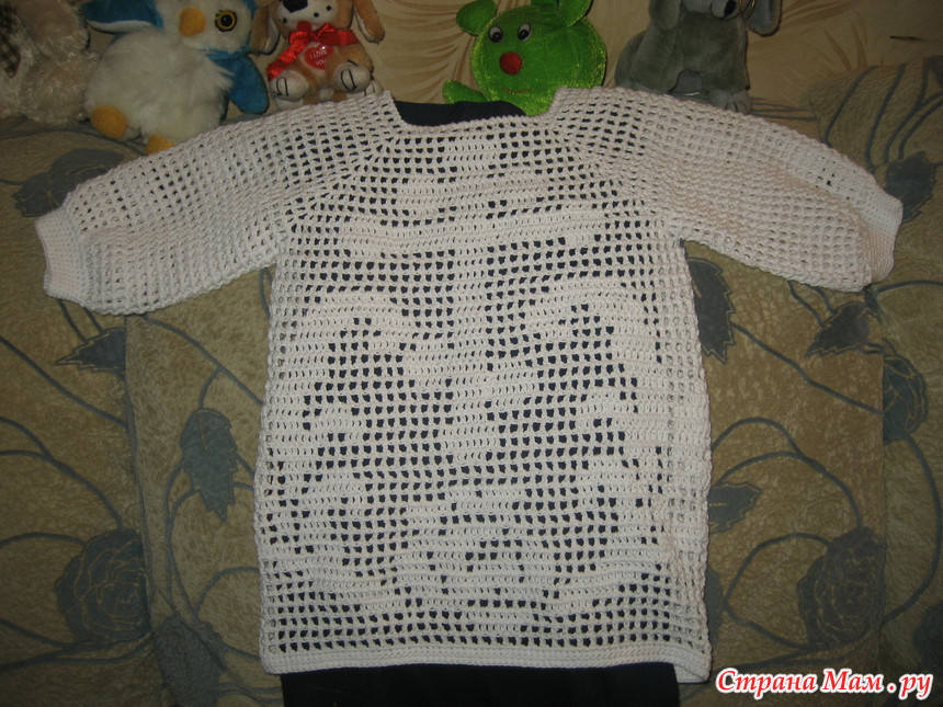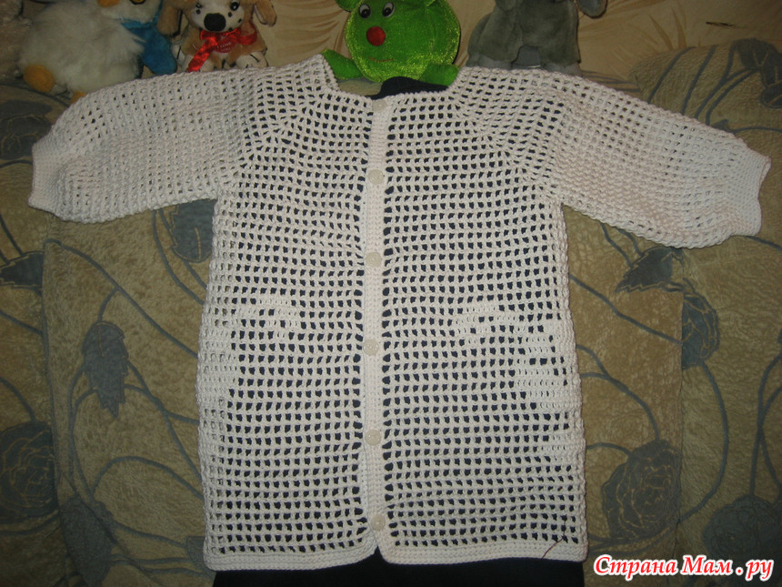 Связала своему племянничку крестильную рубашку. Нитки Солнышко,100% хлопок 425м/100г, крючок № 2.25. Вязала регланом, замучалась высчитывать