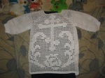 И сама рубашка, сзади на пуговичках. Т. к. рубашка маленькая, схема велика для неё, получилось, что узор заходит немного назад. Филейкой вязала первый раз. Надеюсь не очень плохо, сестре понравилось, т. к. она не вяжет, сказала:" Круто!"