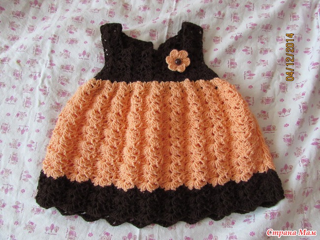 Вот и связалось вот такое милое платьице ко дню рождения моей малышки. Ниточки ализе ланаголд класик ушло 1,5 моточка. Теперь малютка ползает в новом наряде, а я сижу вся такая довоооольная