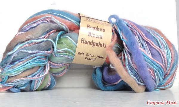 Бамбо Блум Состав: 48%вискоза, 44%шерсть, 8%акрил Длина мотка: 141 Вес мотка: 100 Вес упаковки: 500 Очень интресная ниточка, никогда у нас в магазинах (хотя могут плхвастаться разнообразием) не встречала. Очень поэтичные названия цветов: отражение в воде, ветка клена... Девочки, кто вязал из таких ниток? Как вам?