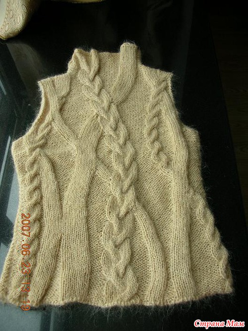 Вот спасибо. Хоть каждый бери и вяжи. Мне надо под блузку на работе. Я наверное уберу горло и рукавчики у первого жилета с косичками, и сделаю под рубашку. Очень понравился серый жилетик-разлетайка. На досуге надо и его смастерить, для романтичного настроения.