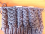 Вот фотография шапки. Всего 96 петель. Узор такой : 1 из. п, коза из 4 петель, 3 из. п., коса из 8 петель,3 из. п., коса из 4 петель,1 из. п.