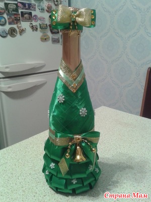 МК прост. Сначала делаю из листа для черчения футляр, подгоняя по форме бутылки, а затем обклеиваю лентами и украшаю подручными средствами. Кропотливо, но затягивает..