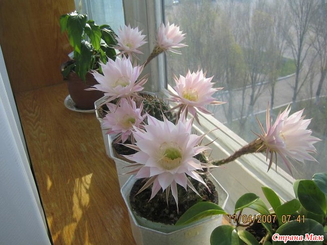 Мое увлечение кактусами началось на работе. Но как-то незаметно они перекочевали ко мне домой. В альбоме я собрала фотографии их в период цветения https://www.stranamam.ru/album/88602/ Это не все мои цветы. Это только кактусы и суккуленты.