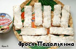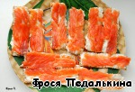 Семгу нарезать тонкими полосками по ширине хлебцов.