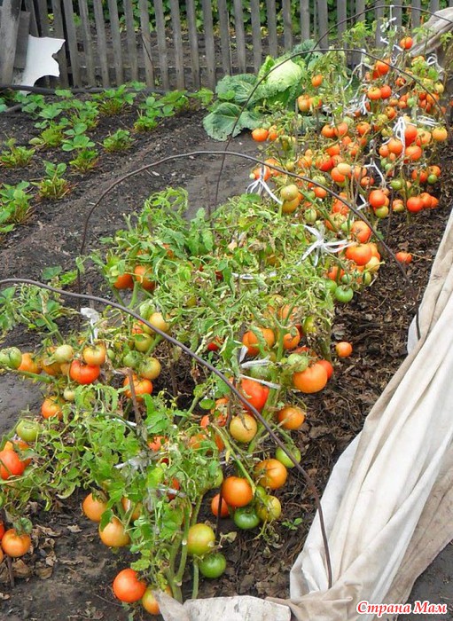 Во-первых, у них на участке нет громоздких теплиц, дорогостоящих по стройматериалам и затратам ручного труда. Этим они подтверждают мнение специалистов о том, что в условиях Алтайского края достаточно тепла и света для выращивания томатов в открытом грунте на садовых участках, предусмотрев только способы защиты от низких температур (укрывная культура под пленкой).