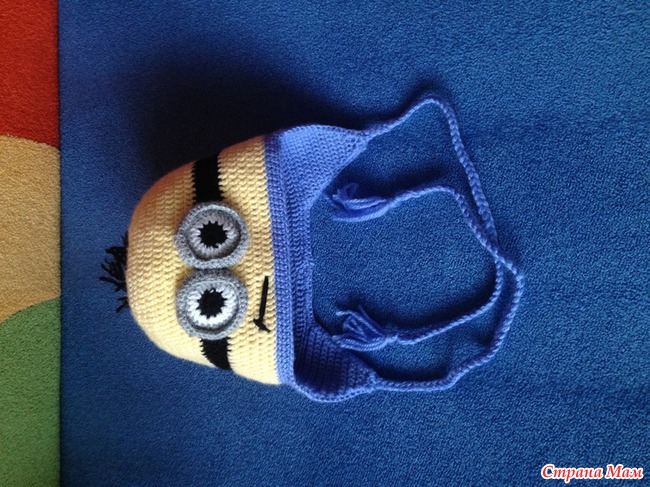 Добрый день! Разрешите похвастаться, вот такая шапка Миньон связалась у меня для моего любимого племяника. К сожалению фото на модели нет. Шапочка двойная, очень теплая и мягкая.