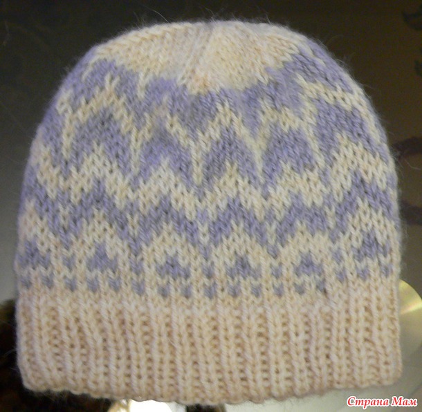 Я набрала 72 п. на 58 размер. Резинка 2х2. Связала узор по картинке и сразу стала убавлять.