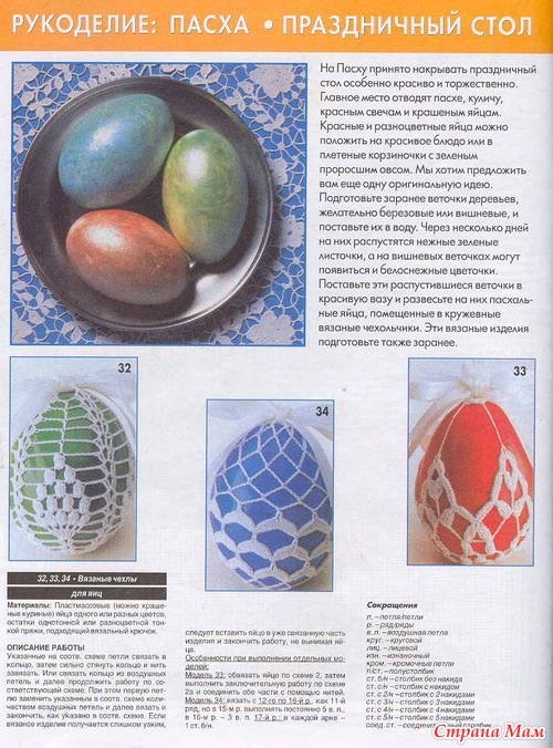 Вот это красота!!! Особенно заяц понравился И еще хочу задать вопрос по поводу украшения пасхальных яиц. Просветите темноту, обвязывают декоративные яйца, например из дерева или пластика или обычные? Если обычные, то их потом не съешь, жалко будет такую красоту портить. И оставить их как украшение, наверное, надолго нельзя - испортятся. Как быть?