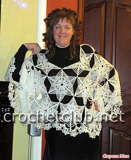 из пpяжи MAGIC Romance, цвeт № 357 http://crochetclub.net/blog/poncho-kryuchkom-snezhinka/