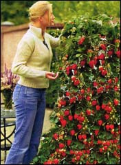 Когда же с очередным заказом саженцев этого клубничного чуда я получила рекламный буклет, то поняла, что конкретным сортом вьющейся клубники (который взбирается на высоту до 1,5 м, либо ниспадает вниз), фирма не располагает. По крайней мере, заказчикам такие саженцы не высылаются. А практикуются хорошо отработанные и умело использованные в рекламных материалах способы выращивания земляники: в виде пирамид, колонн, вертикальных стенок и т.д. Всё это уже давно известные, иногда трудоёмкие, но вполне реальные способы.