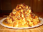 Перемешаем выпеченное тесто с кремом и выложим горкой, придав ей форму муравейника.