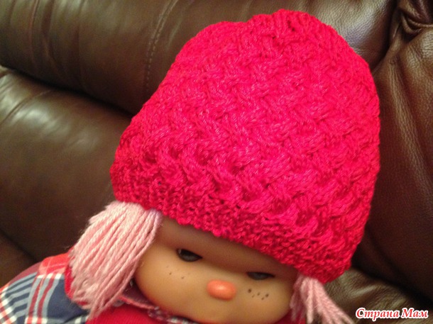 Связала шапочку под елочку для девочки узором "Плетенка 3х3 " Окружность головы 50 см.
